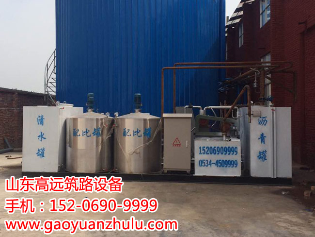 瀝青加溫罐、乳液摻配罐、水加溫罐、乳化劑反應釜(兩個)、成品罐、調速瀝青泵、調速乳液泵、乳化機(兩臺)、管道泵、攪拌泵、成品輸送泵、數控系統、大底板、管道、閥門、過濾系統等組成。